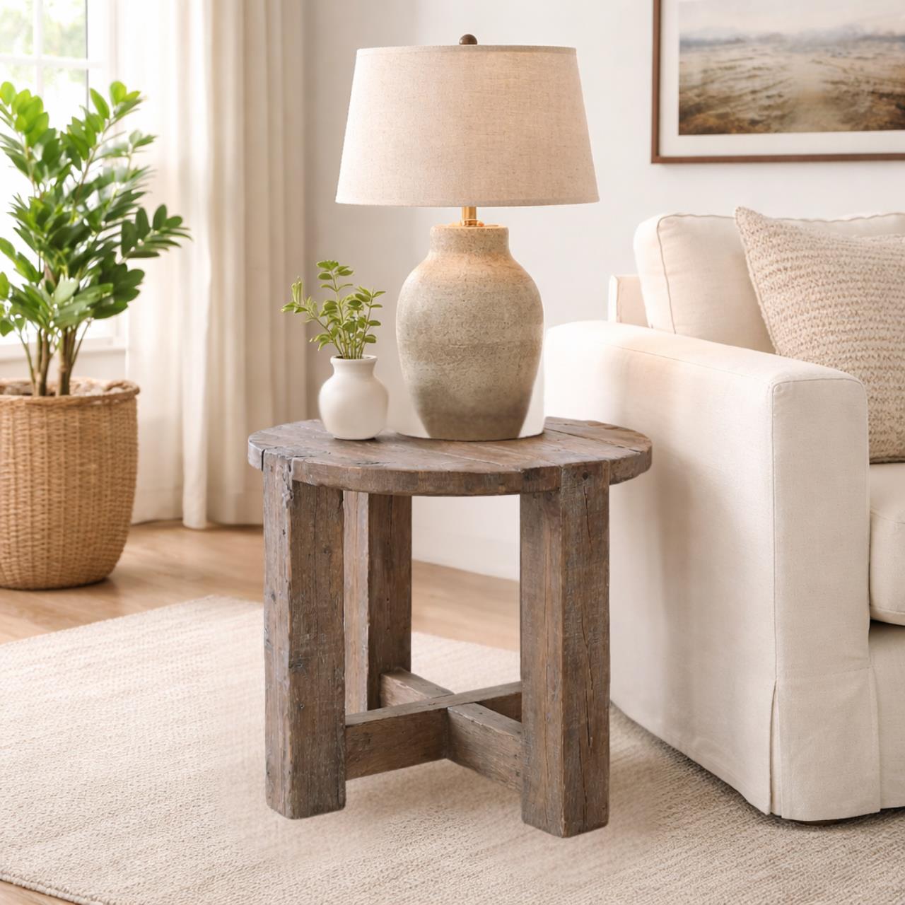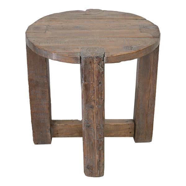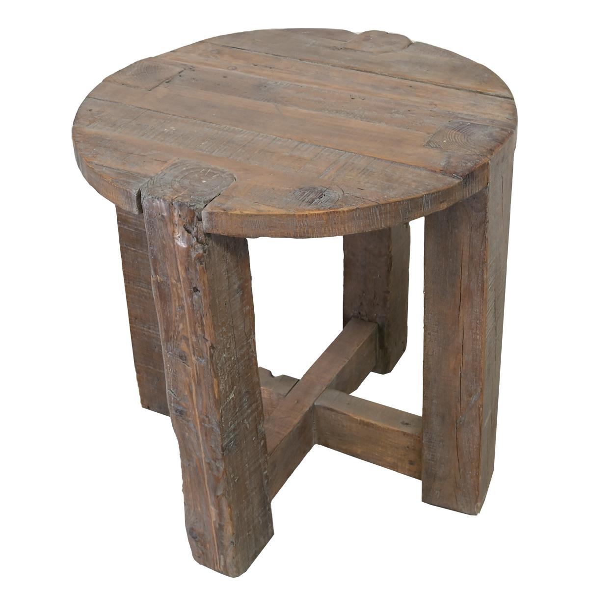 "Round Top End Table" - Quality solid wood end table on quadriform base, featuring hand aging and finishing