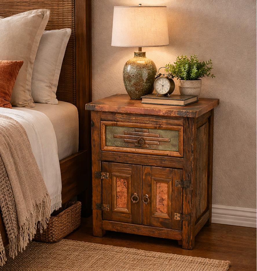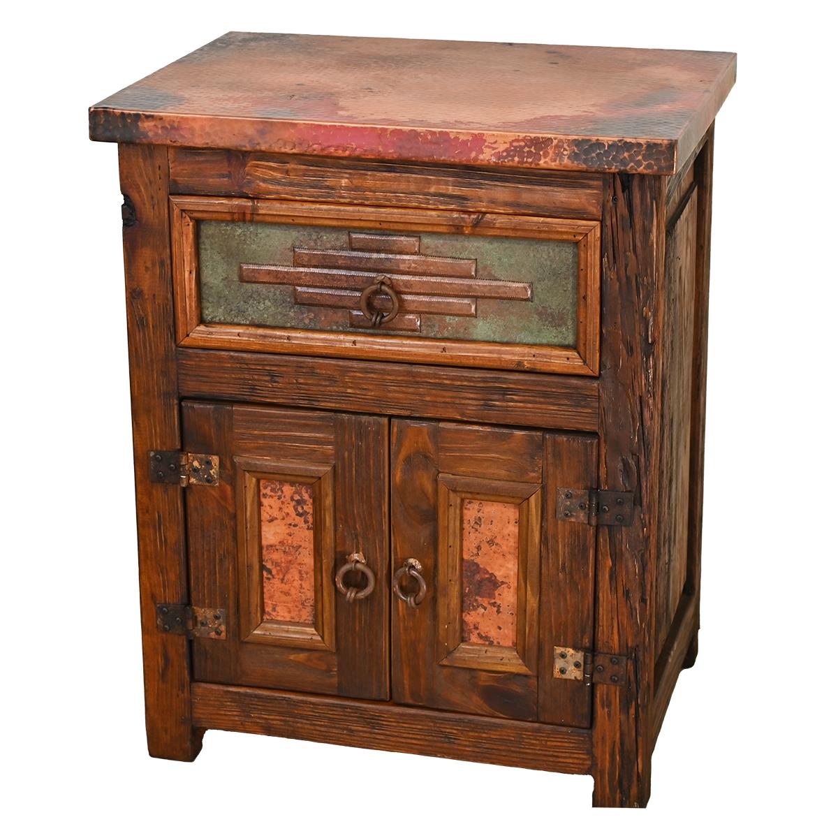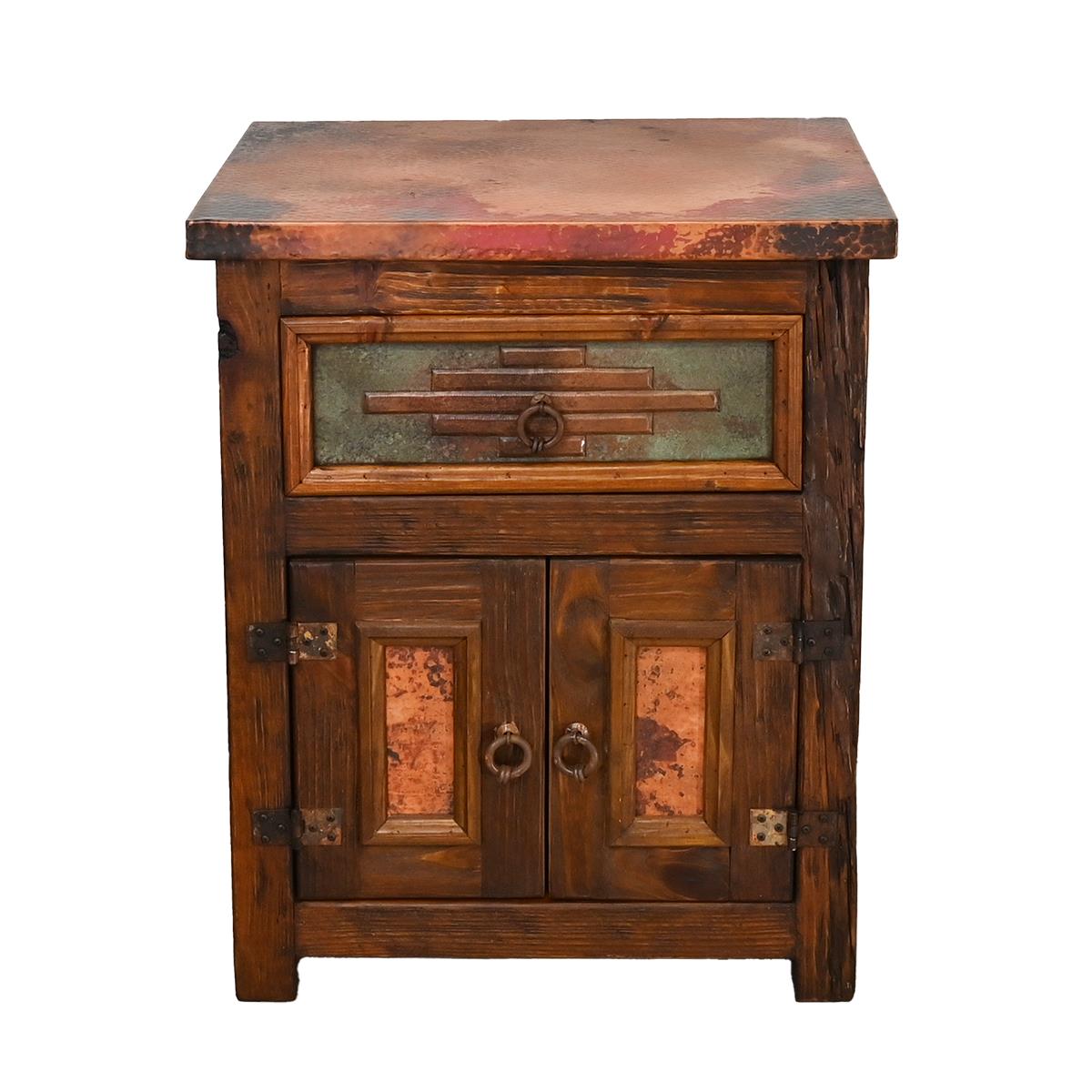 THREE DRAWER NIGHTSTAND WITH COPPER INSERTS